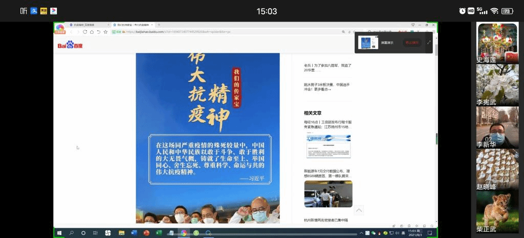 8月3日下午,机关党委第十四党支部(网络信息中心)基于企业微信平台开展党史学习教育线上集体学习。支部书记李新华带领大家学习了伟大抗疫精神。