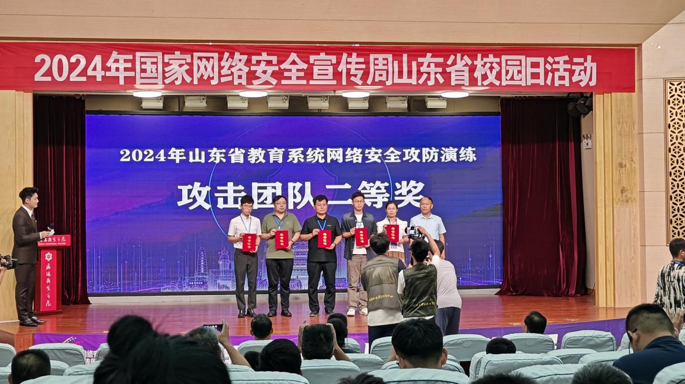 学校网络安全工作负责同志同时参加了山东省校园日活动。在山东省教育厅网络安全和信息化领导小组办公室组织举办的2024年度山东省教育系统网络安全攻防演练活动中,我校荣获二等奖,这是我校在该活动中连续第三年获奖。