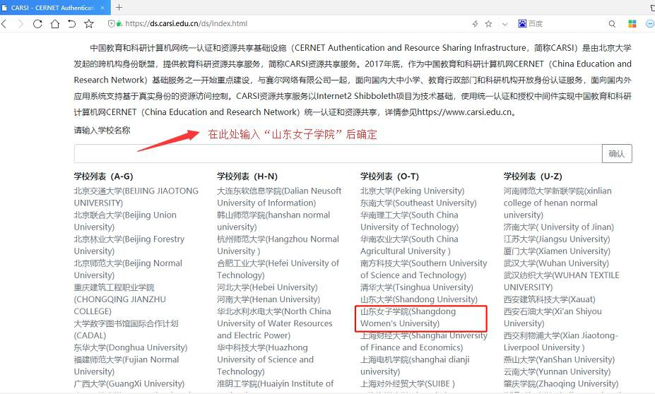 第一步:在浏览器中输入访问地址:https://ds.carsi.edu.cn/